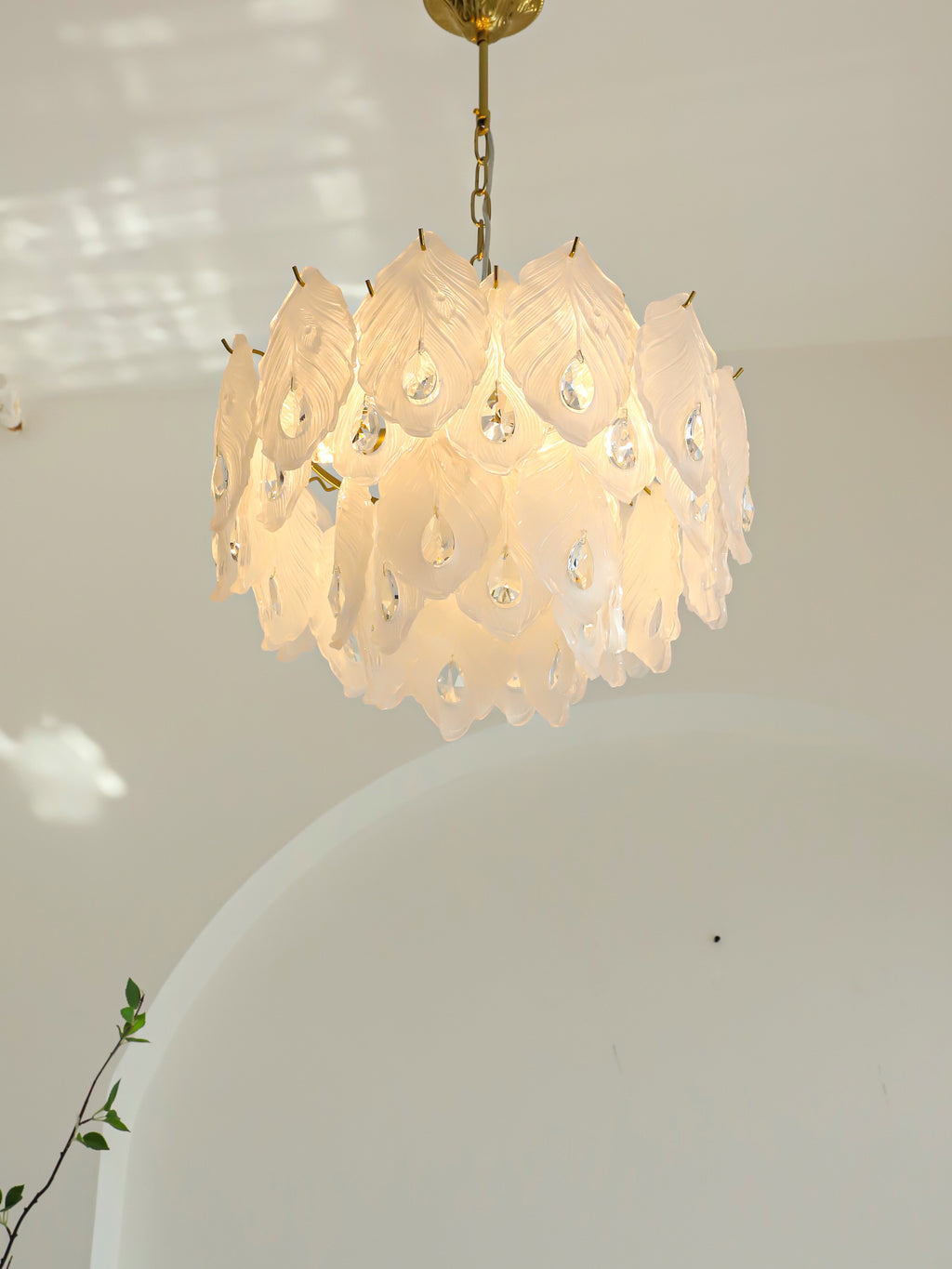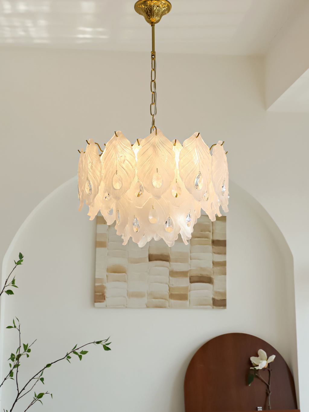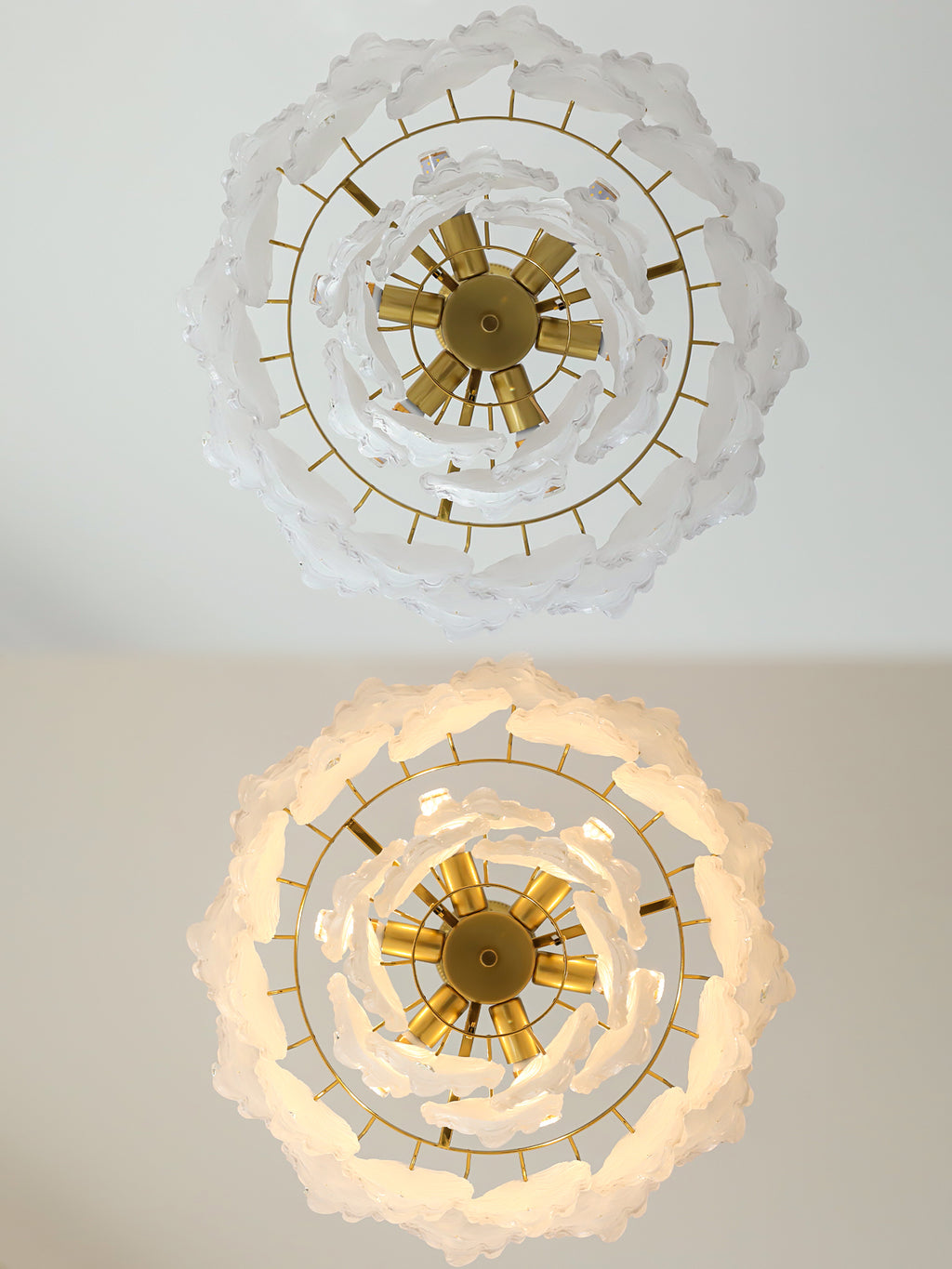 Add a touch of playful sophistication to your space with this dazzling chandelier. Its unique design, featuring textured glass, creates a captivating play of light. This elegant piece is perfect for illuminating your any room.Prepare to be delighted by its radiant charm!