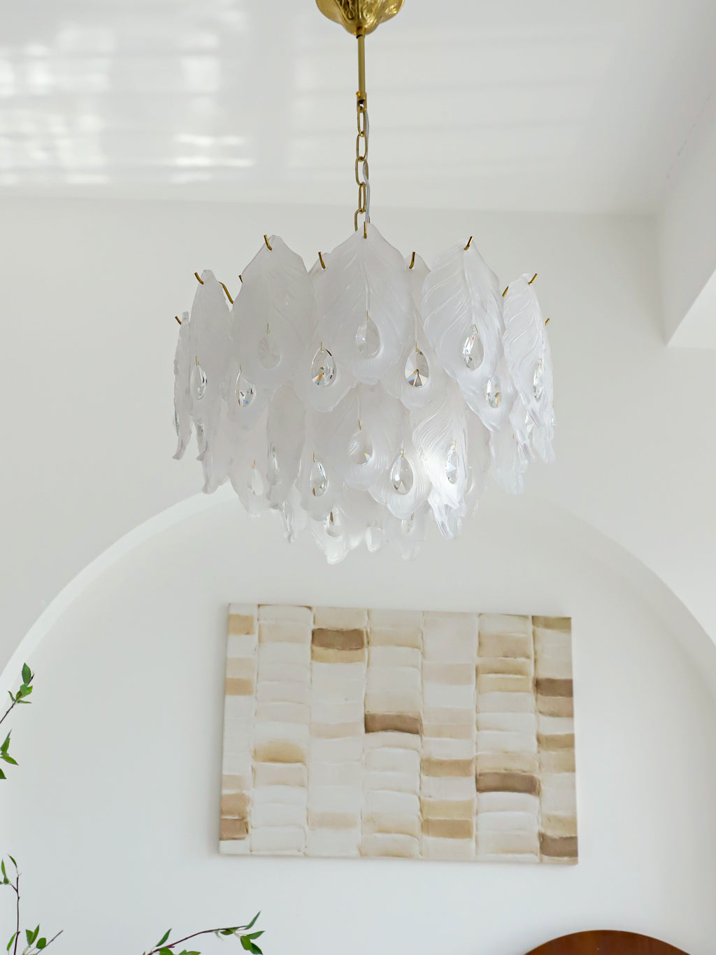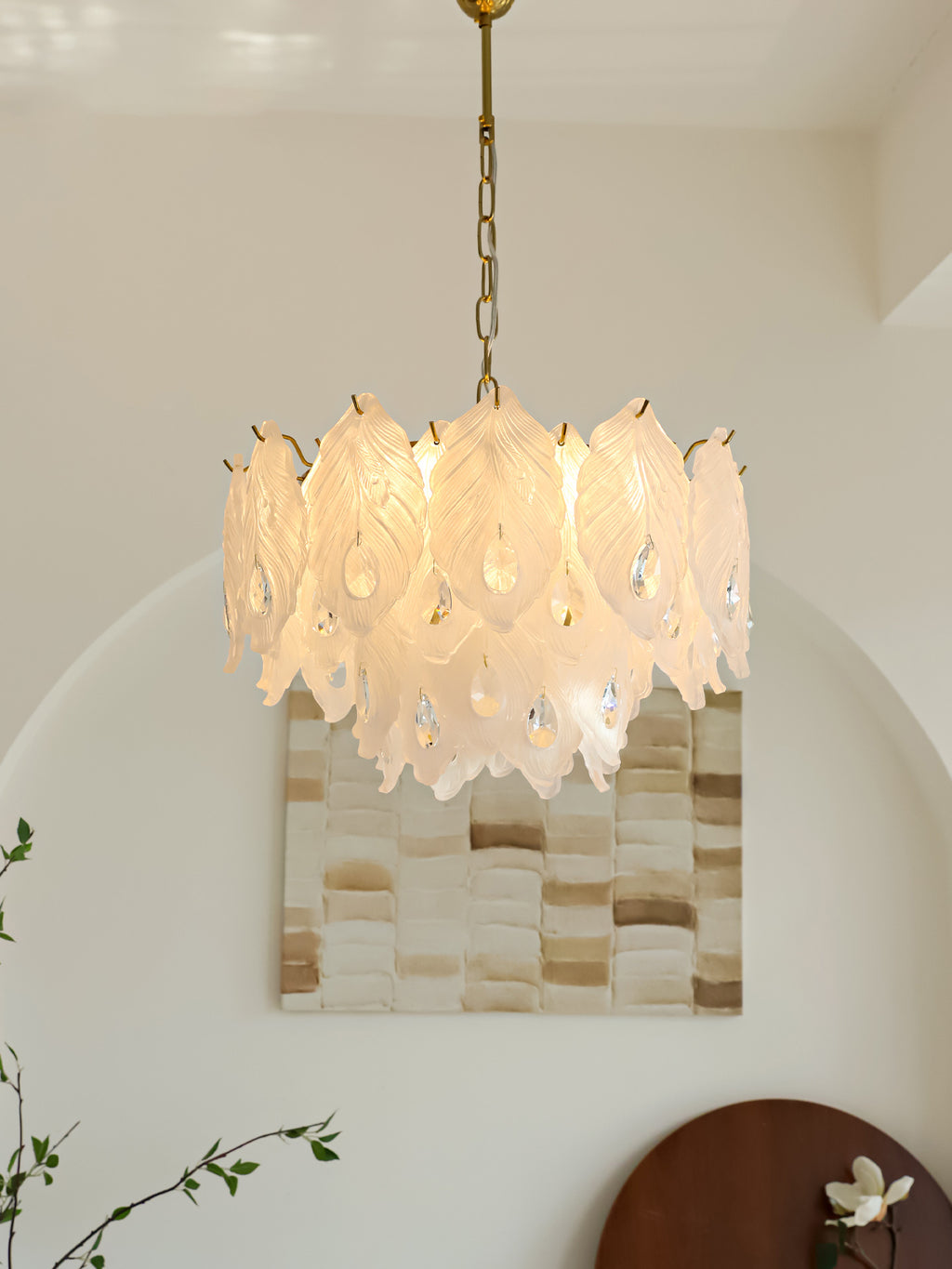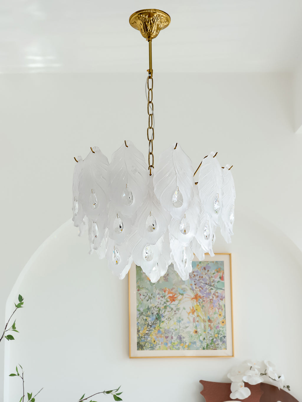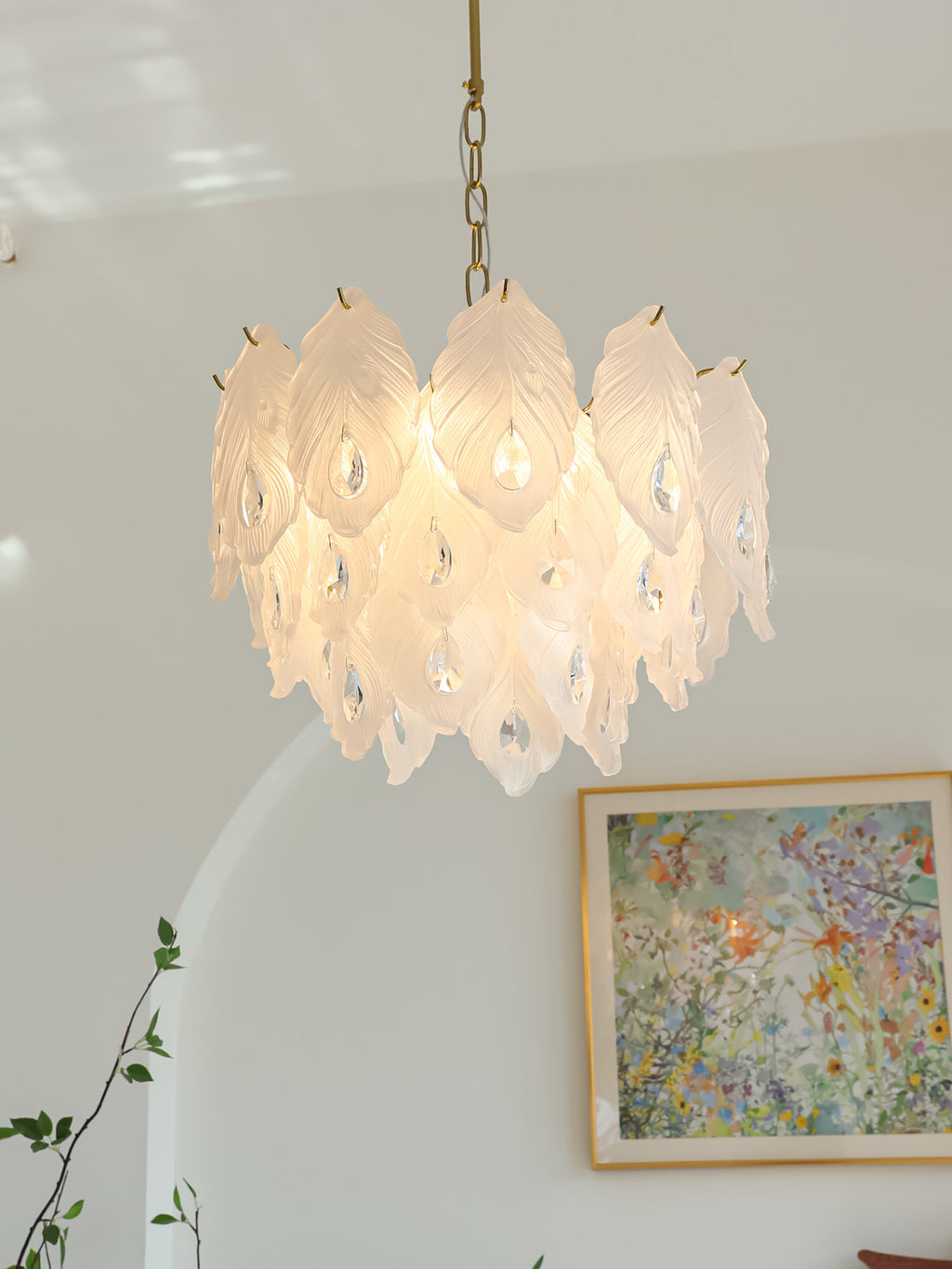 Add a touch of playful sophistication to your space with this dazzling chandelier. Its unique design, featuring textured glass, creates a captivating play of light. This elegant piece is perfect for illuminating your any room.Prepare to be delighted by its radiant charm!